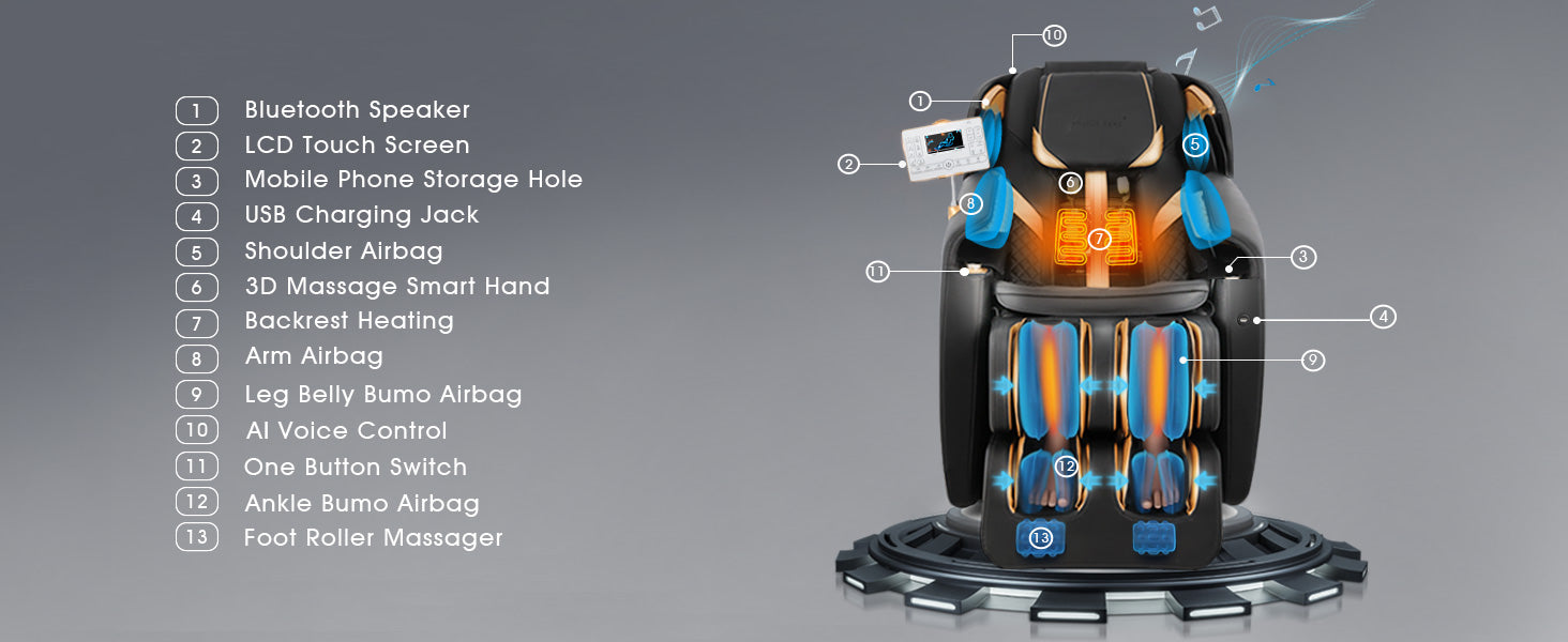 The distinguishing feature of this massage chair lies in its cutting-edge AI voice control system. With the ability to activate the chair simply by saying "Hi Artist," users can seamlessly instruct and switch between various functions by providing specific vocal commands. This advanced technology not only enhances the user experience but also sets this chair apart as a convenient and futuristic addition to any home or relaxation space.