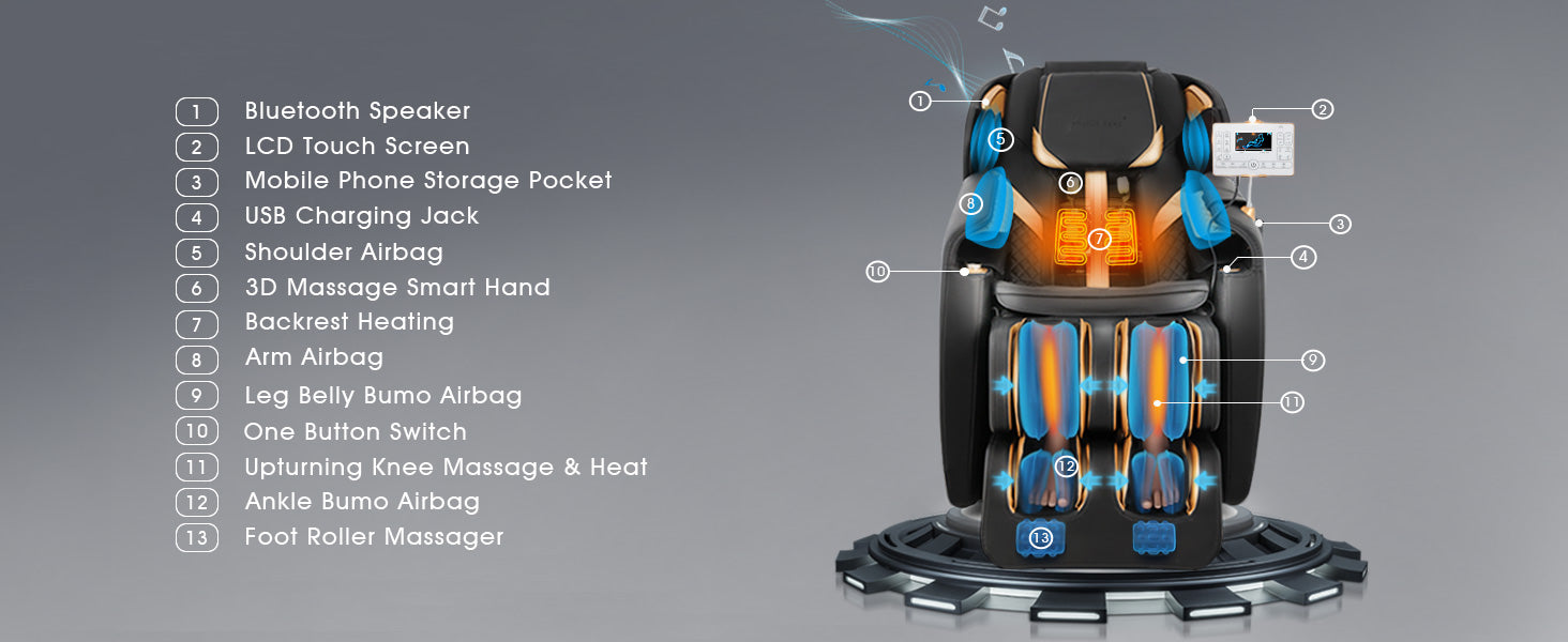 ndependent control for the waist and back, specially designed for knee, calf and plantar, with nano carbon fiber constant-temperature therapy to relieve fatigue.