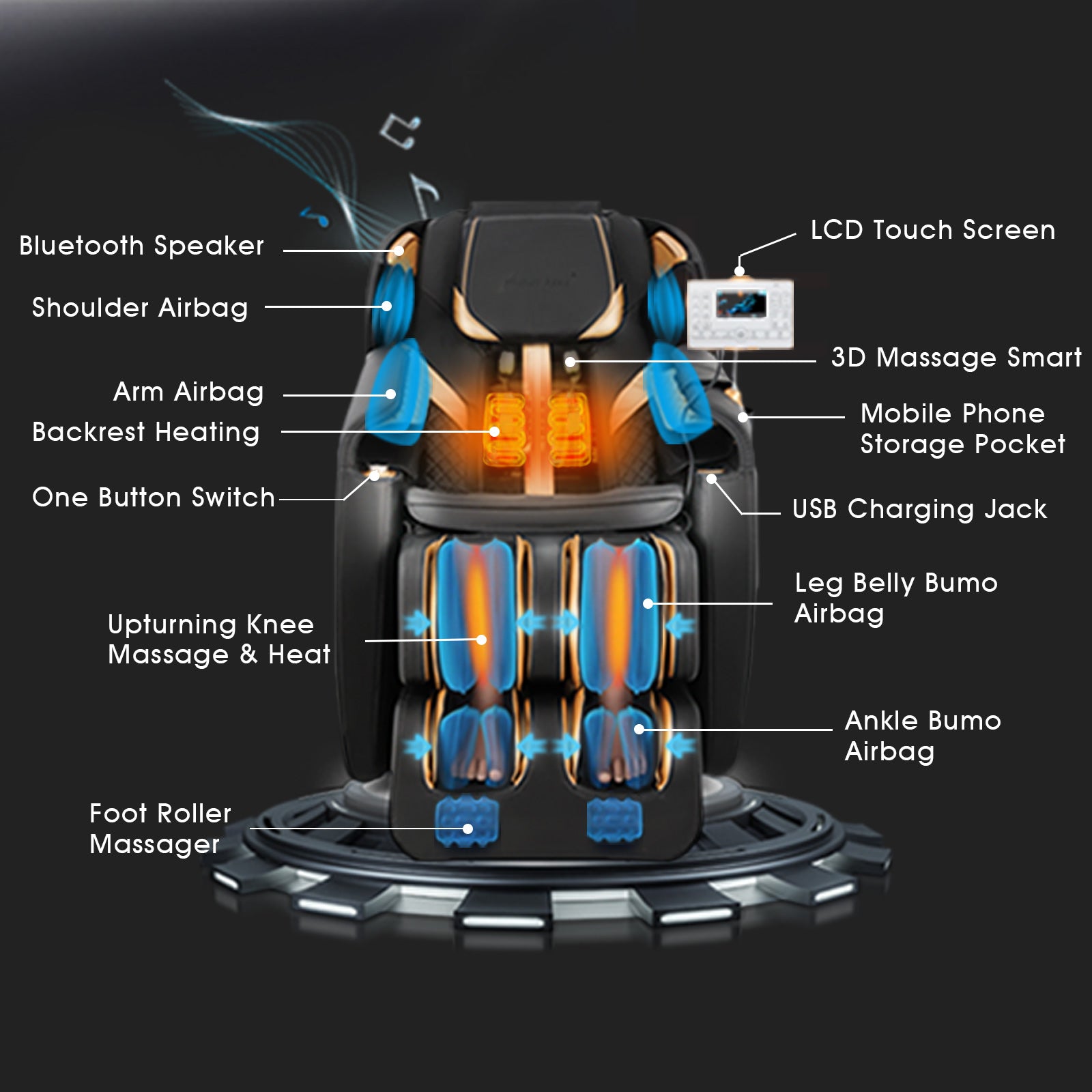 #2003 Massage Chair, SL Track Zero Gravity ,12 Modes, Bluetooth, Body Scan, Airbags Massage, Knee Heating