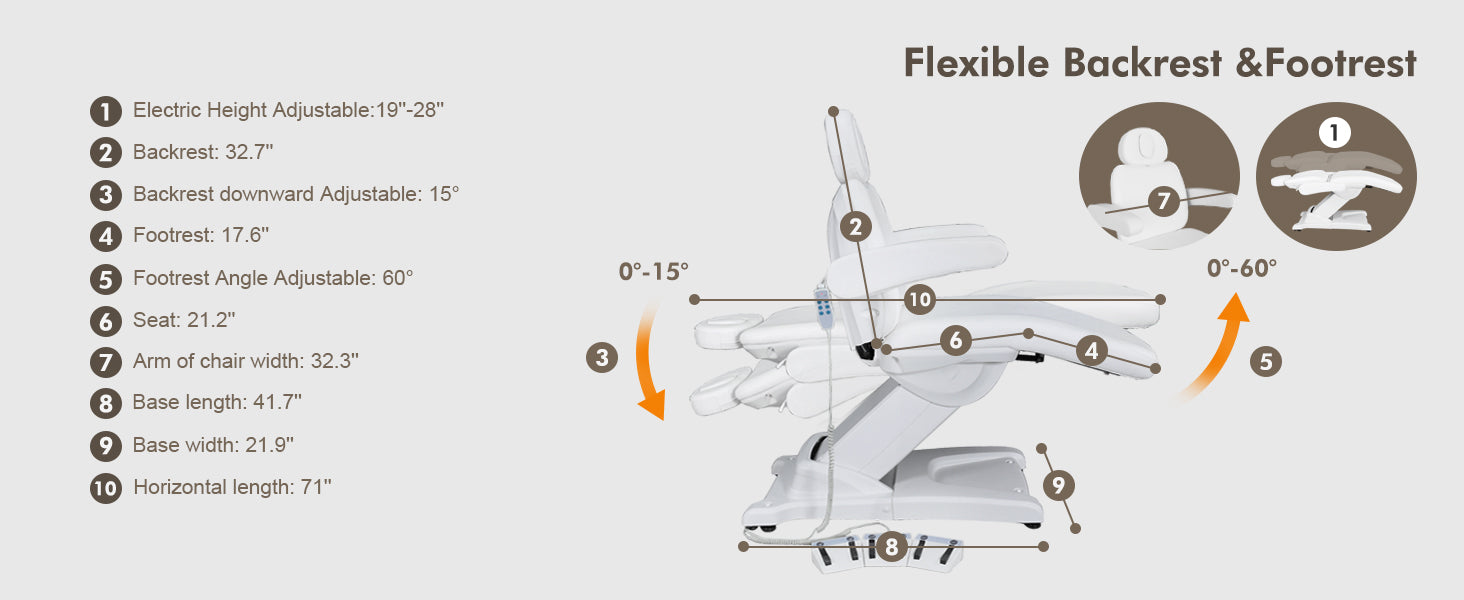 #2905 3 Motors Aesthetic Chair Dual Control Full Electrical Medical Facial Beds for Esthetician Beauty Bed Podiatry Doctors Chair
