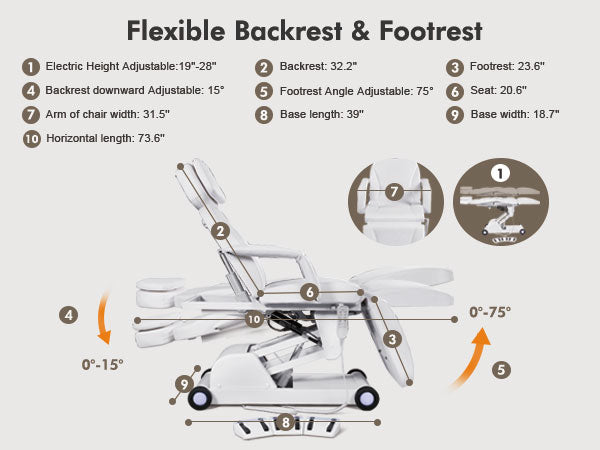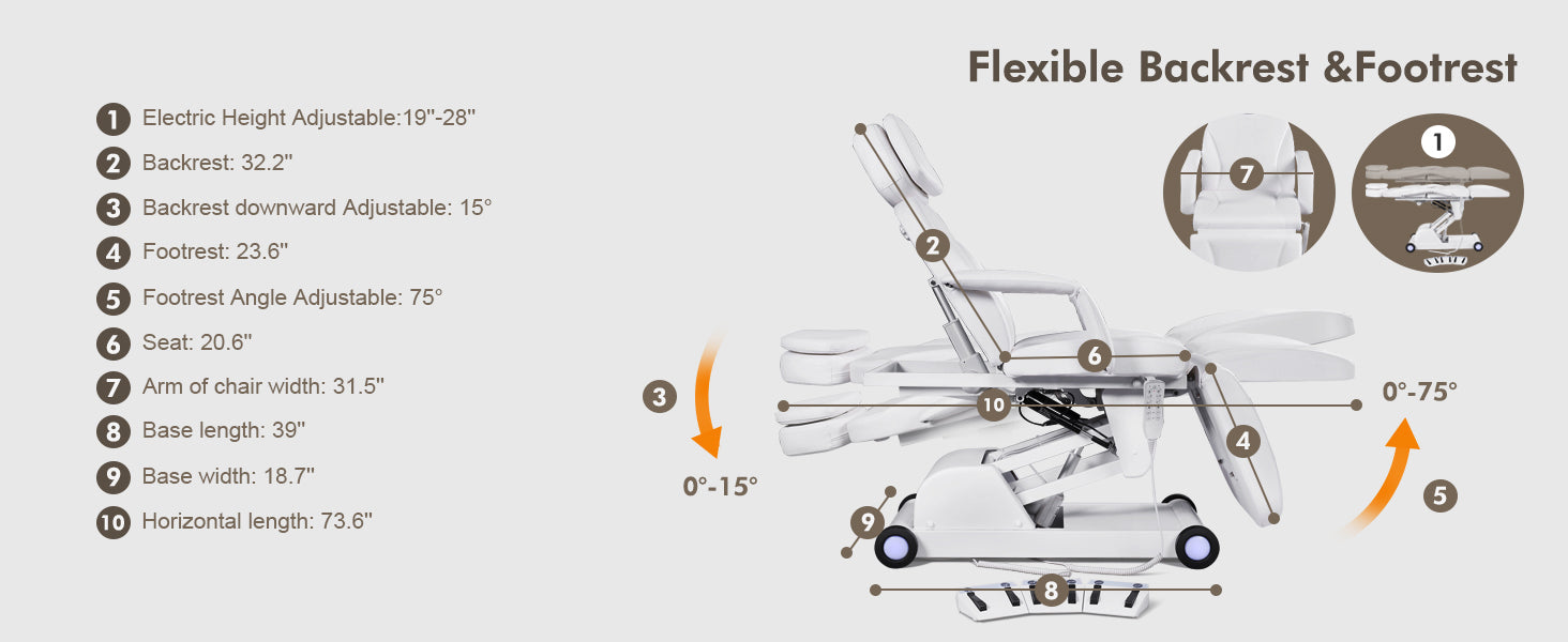 #2909 Electrical Facial Bed,3 Motor Removable, Led Light ,Medical Aesthetic, Hand/Foot-Operated